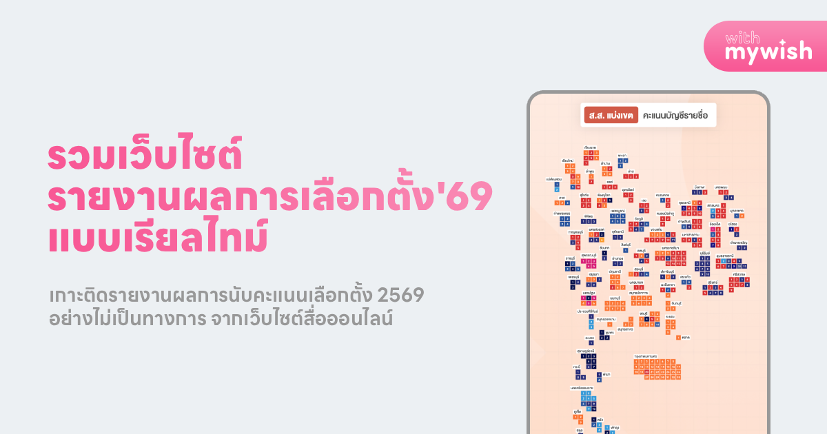รวมเว็บไซต์รายงานผลการเลือกตั้ง 2569 เช็กผลคะแนนเลือกตั้ง 69 แบบเรียลไทม์
