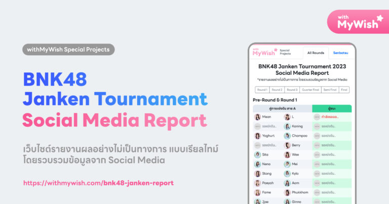 รายงานผล BNK48 Janken Tournament 2023 อย่างไม่เป็นทางกา … อ่านเพิ่มเติม BNK48 Janken Tournament 2023 Social Media Report